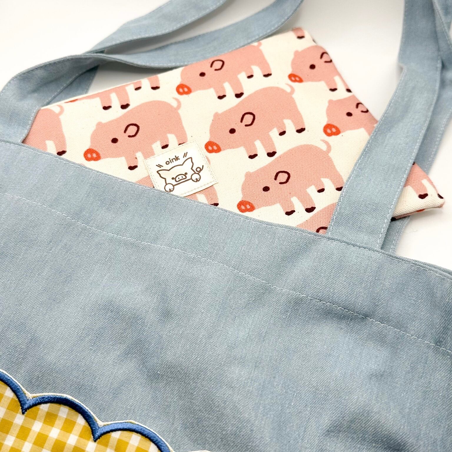 かわいいぶたさんの柄の生地で、使いやすくしっかりとしたポーチを作りました。