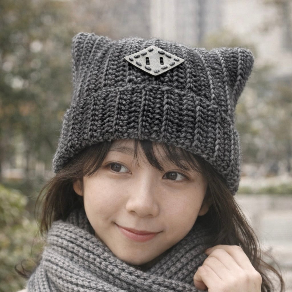 かわいらしいぶた耳が特徴のニット帽が登場しました! グレーを基調としたデザインで、シックな中にも可愛らしさをプラス。